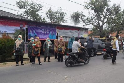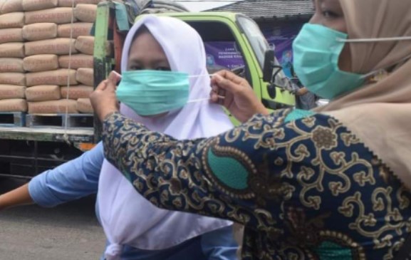 Dalam rangka memutus mata rantai penyebarluasan virus Corona (Covid-19) tim penggerak PKK desa kampung Melayu barat bersama masyarakat gelar aksi bagi-bagi masker gratis kepada warga yang tidak memakai masker di sepanjang wilayah jalan raya Desa kampung Melayu barat, Kecamatan Teluknaga Kabupaten...